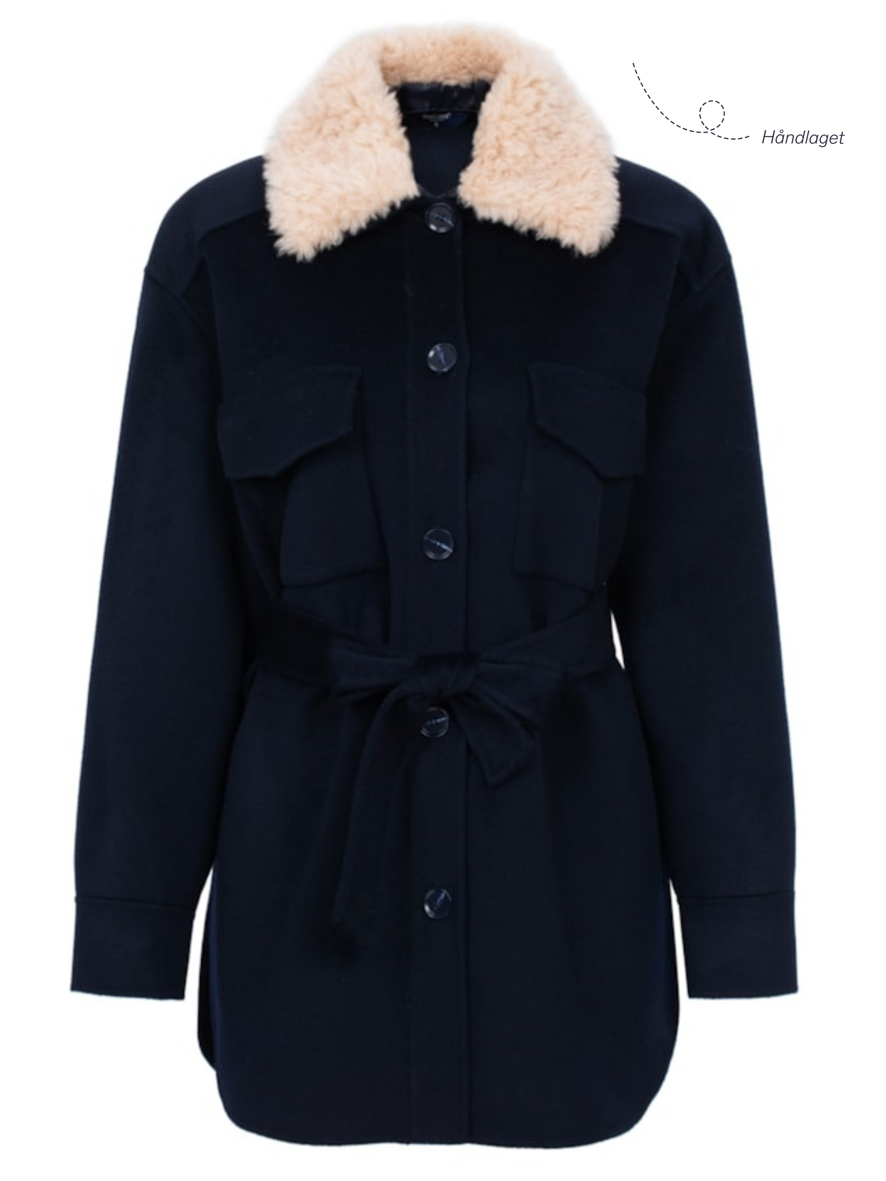 • Skålatårnet jakke er en elegant ytterjakke til dame designet som en skjorte. Den er laget av en luksuriøs blanding av 90% ull og 10% kashmir for optimal varme og komfort. Jakken er utstyrt med et belte i livet, bryst- og sidelommer for både funksjonalitet og design. Den har også en avtagbar pelskrage i 100% lammeull, som gir ekstra varme og et stilig preg.
